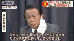 麻生大臣「東京は資金あるけど他県やれるかね」【協力金】